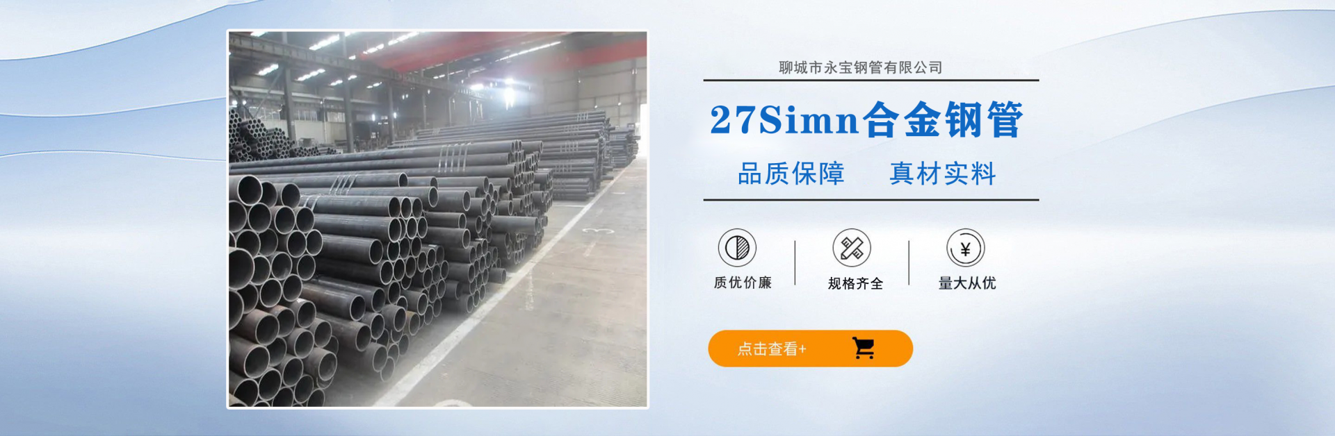 聊城市永寶鋼管有限公司是聊城較大的鋼管生產企業之一。地理位置優越,交通十分便利。公司占地面積99000平方米,廠房占地面積42000平方米,員工365人,其中外聘高級工程師10人,高級管理人員8人,大專以上學歷56人。總資產達1.5億元,二期工程已籌備建設,完成后年出產能力可達到35萬噸。主營產品:27Simn合金鋼管,高壓鍋爐管,20G鍋爐管,厚壁合金鋼管,15CrMoG合金鋼管,42crmo合金鋼管,40crmo合金鋼管,20G合金鋼管,合金鋼管廠,鍋爐管廠  公司以先進的工藝、優良的產品質量、寬幅的產品組矩、優質的服務贏得中外鋼管行業的好評。本公司通過了ISO9001:2000國際質量管理體系認證?! ∑髽I精神:“創新、求實、誠信、高效”;  企業作風:“嚴、細、實、快”;  企業工作方針:加強內部管理,夯實基礎,全面提高職工整體素質,使企業管理水平再上新的臺階?! 」咀谥迹阂苑涨笫袌?、以質量求生存、以創新求進步、以科技求發展。...